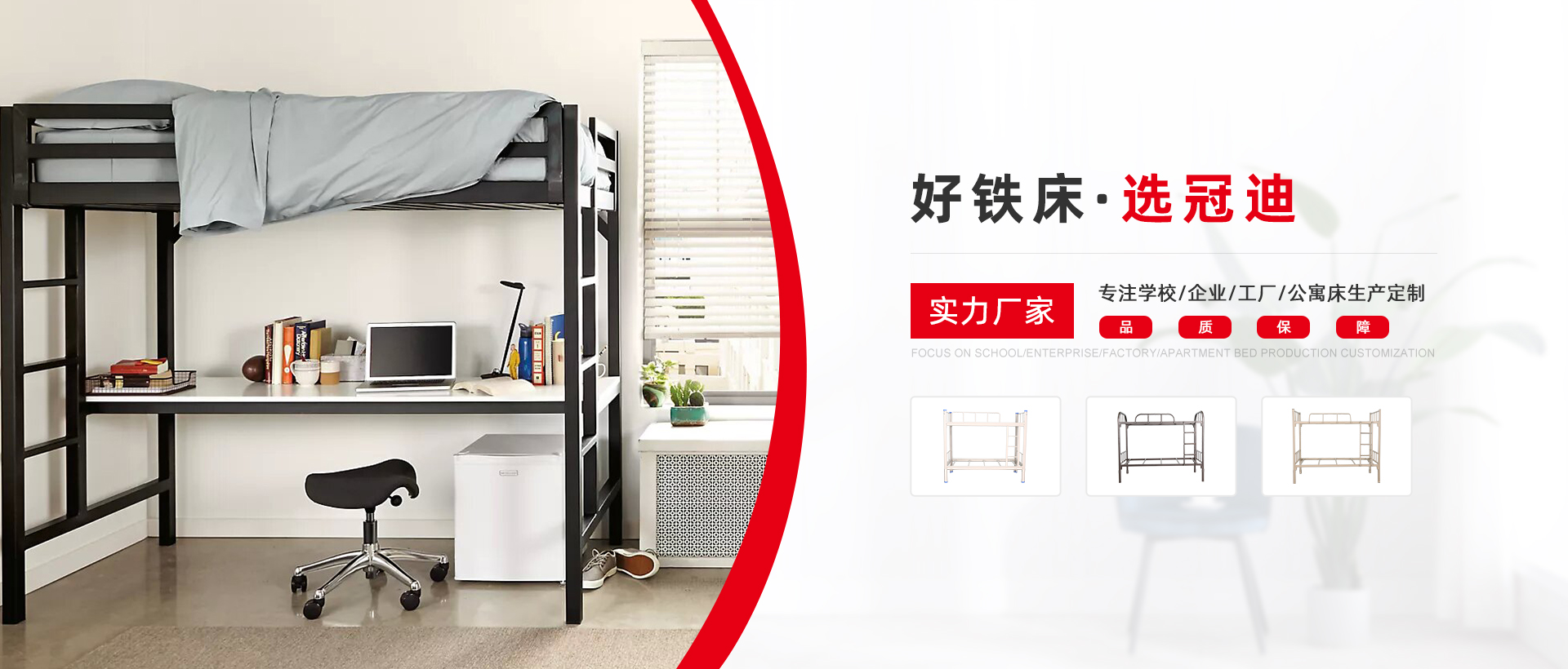 選擇冠迪五金鐵床的 理由 現代化生產制造企業,為超過1000企業單位提供公寓宿舍鐵床鐵柜整體解決方案